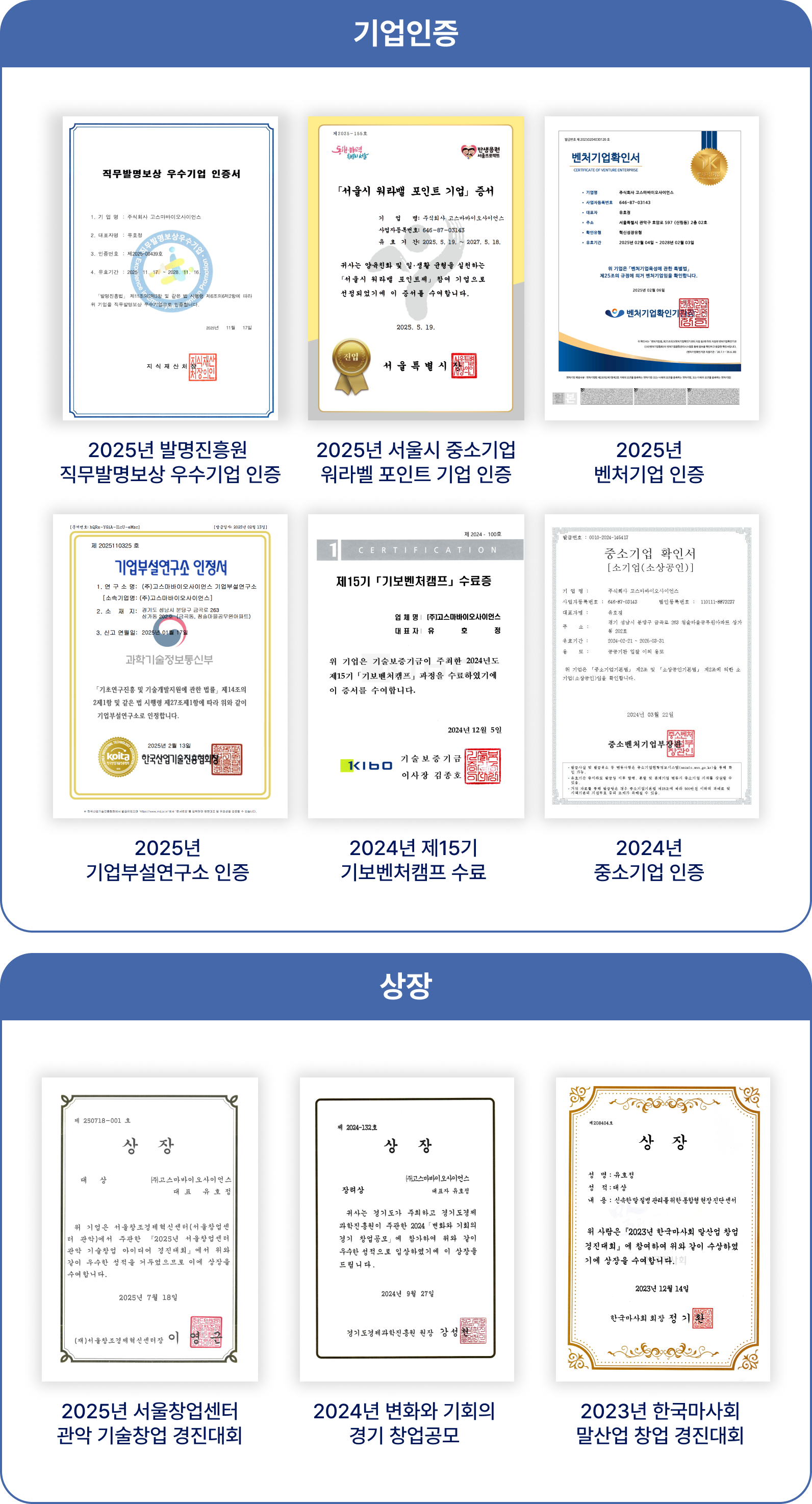 기업인증 및 상장